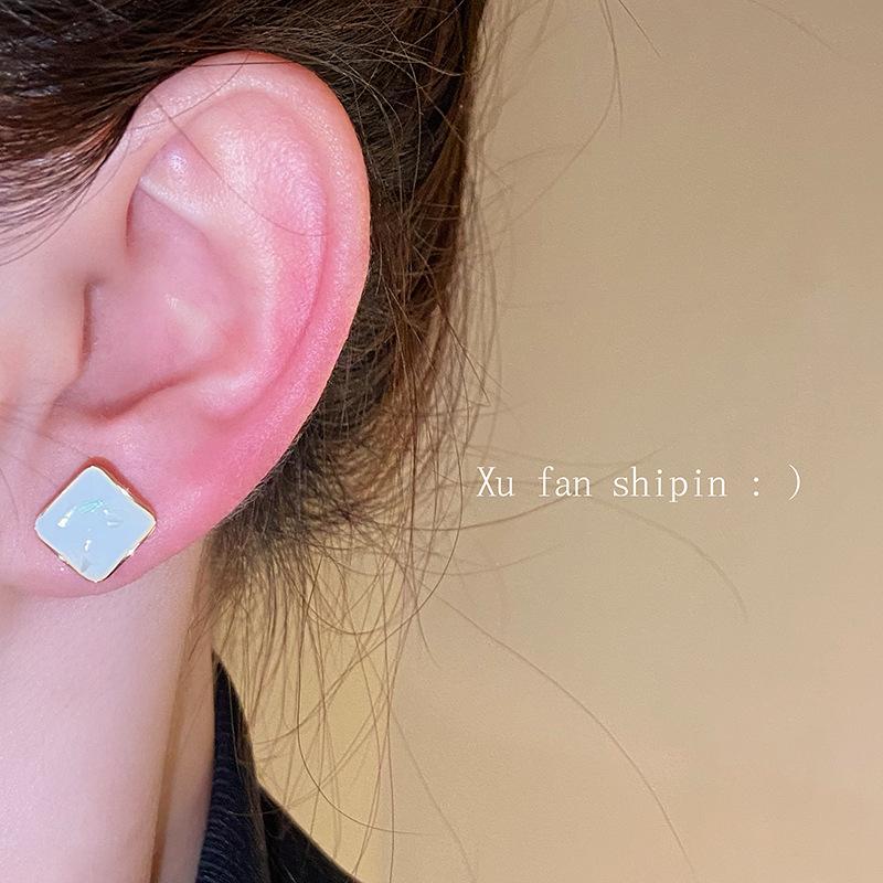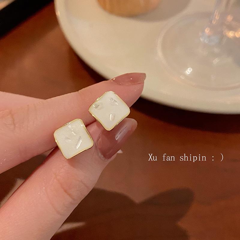 Brincos de gota de óleo quadrados geométricos simples e elegantes para mulheres 2023 Novos brincos e brincos de sentido de design de nicho de luxo leve da moda