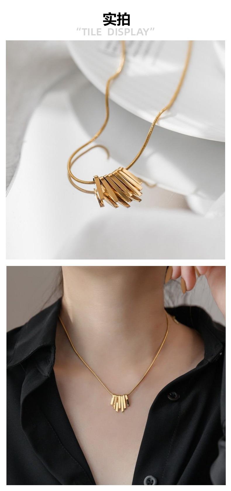Colar de aço titânio para mulheres ins novo nicho design barra de ouro ventilador pingente de moda marca de moda clavícula cadeia colorfast