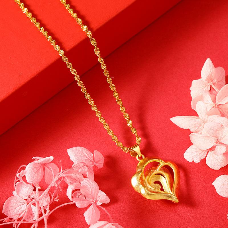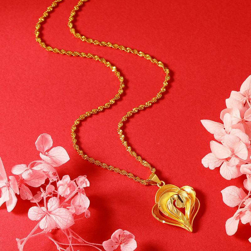 Europa e Estados Unidos transfronteiriço 2024 nova corrente feminina online popular de ondas de água colar de pescoço feminino personalizado pingente de amor simulação ouro