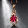 Compre Nova Moda Elegante Em Forma de Gota Rosa Vermelha Gemstone Imitação Turmalina Vermelha Cor Pingente Elegante Clavícula Cadeia de Jóias Femininas no atacado no Joom.pro