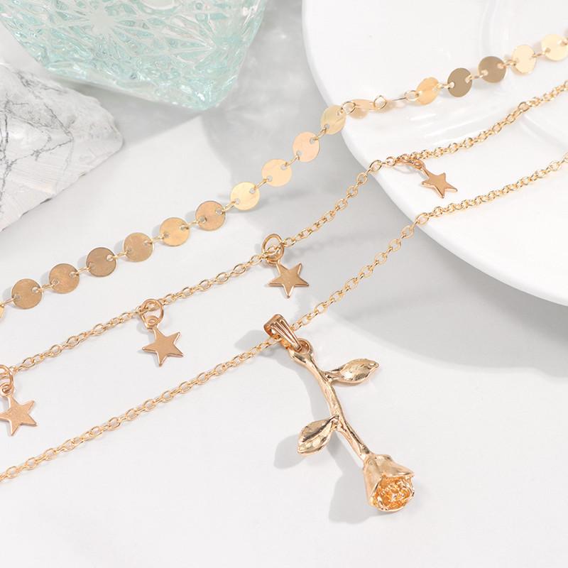 Europeu e Americano geométrico redondo colar de lantejoulas feminino boêmio moda estrela rosa pingente colar