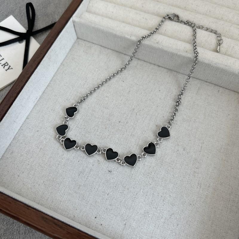 Colar leve luxuoso elegante com gota preta esmaltada com costura de amor, corrente de clavícula, moda simples e de nicho, novo colar
