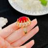 Anel de Ouro Artesanal Esculpido com Textura Estilo Corte Italiano Vintage Antigo Canto Vermelho da Internet Rupee Rubi