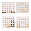 Conjunto de brincos de clipe geométricos redondos quadrados de zircônia tricolor de flor mais vendidos transfronteiriços para 12 pares de brincos mensais