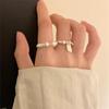 Anel de mão elástico de pérola de prata quebrada estilo francês feminino elegante simples anel de prata S925 empilhado para usar anel de dedo de comida de nicho moda