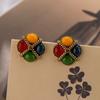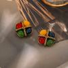 Brincos de pino quadrados estilo retrô francês novo, cor desgastada, simples, elegante, de alta qualidade, brincos de pino de prata antiga