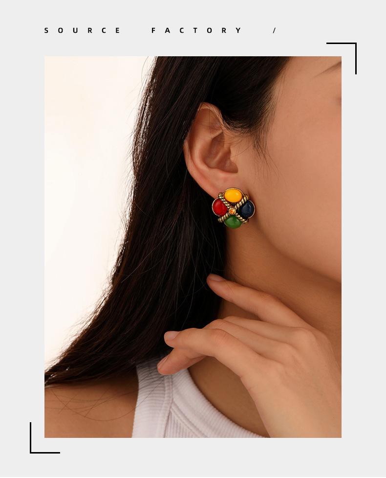 Compre Brincos de pino quadrados estilo retrô francês novo, cor desgastada, simples, elegante, de alta qualidade, brincos de pino de prata antiga no atacado no Joom.pro
