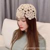 Chapéu Feminino Chapéu Branco Capa de Cabelo Quatro Estações All-match Respirável Feito à Mão Gancho Chapéu de Malha Flor Oca Verão Biqueira Fina