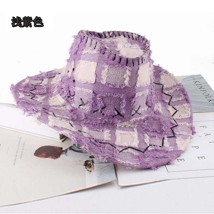 Primavera e verão homens e mulheres escovado xadrez chapéu de cowboy ocidental cavaleiro chapéu de aba grande chapéu ao ar livre chapéu chapéu de sol