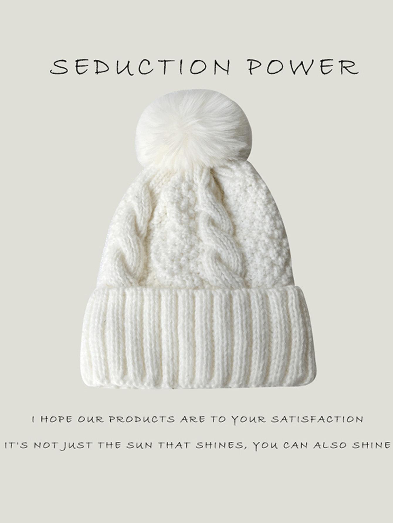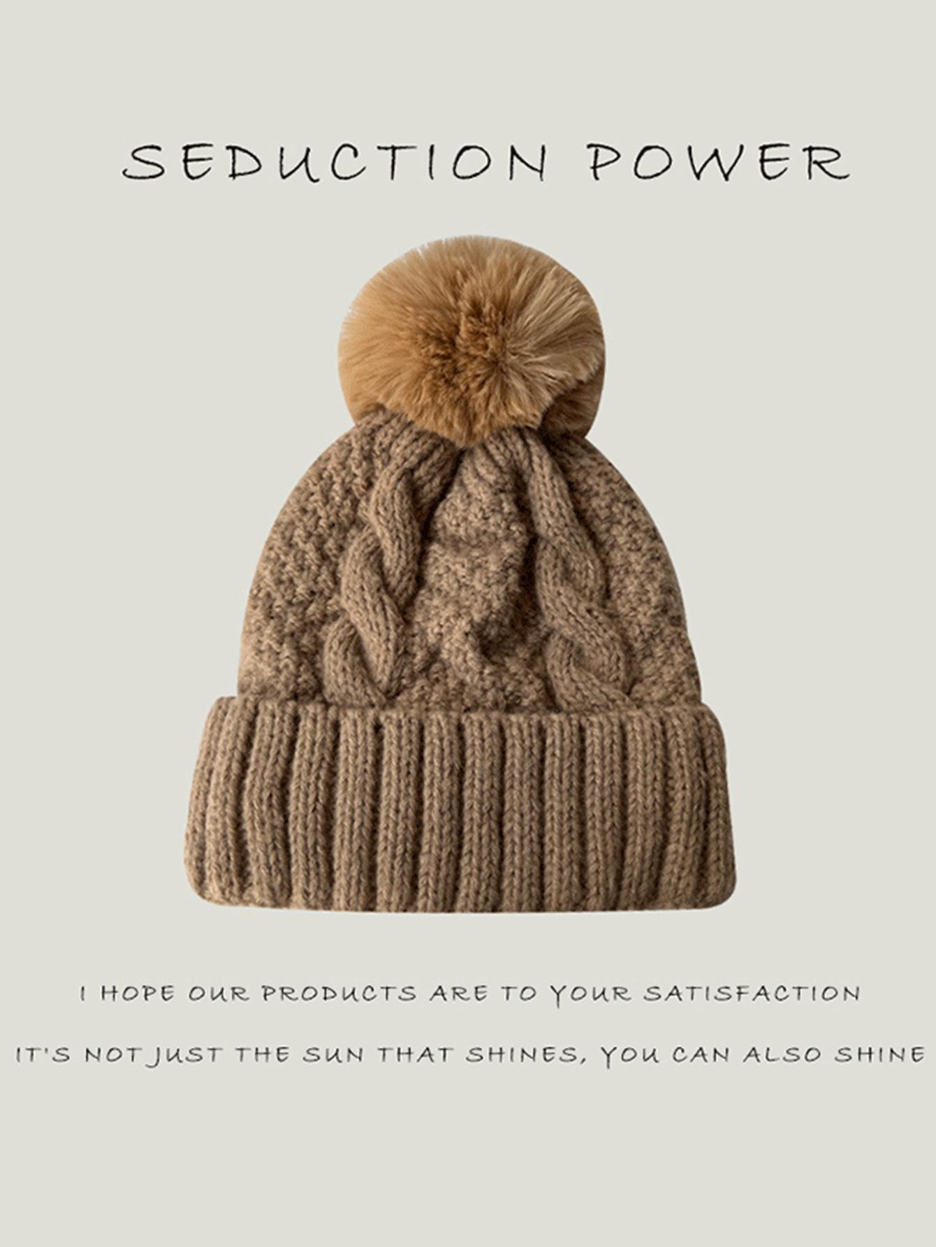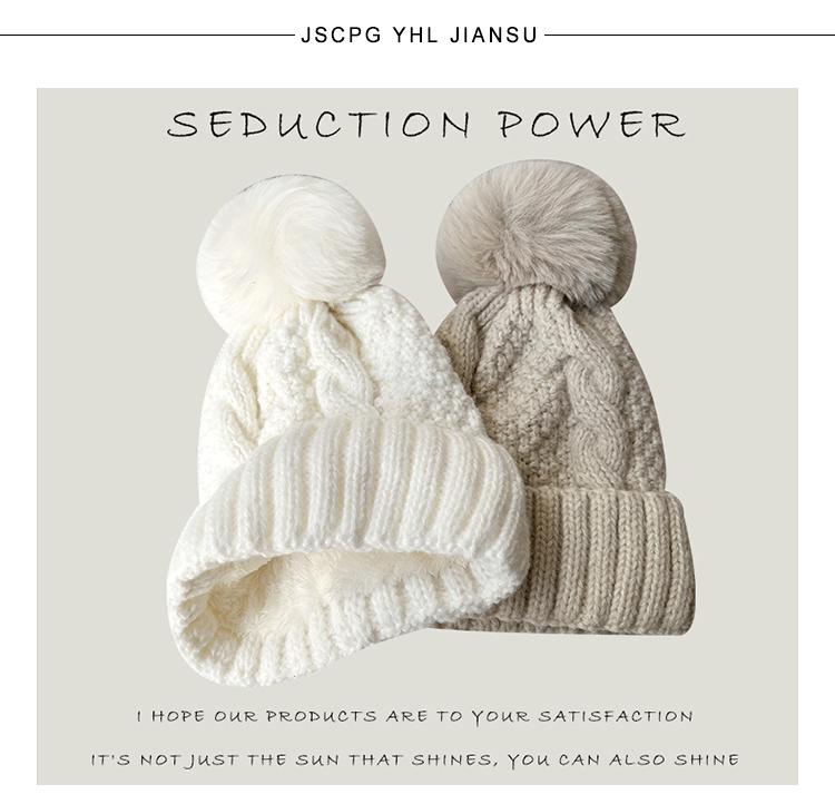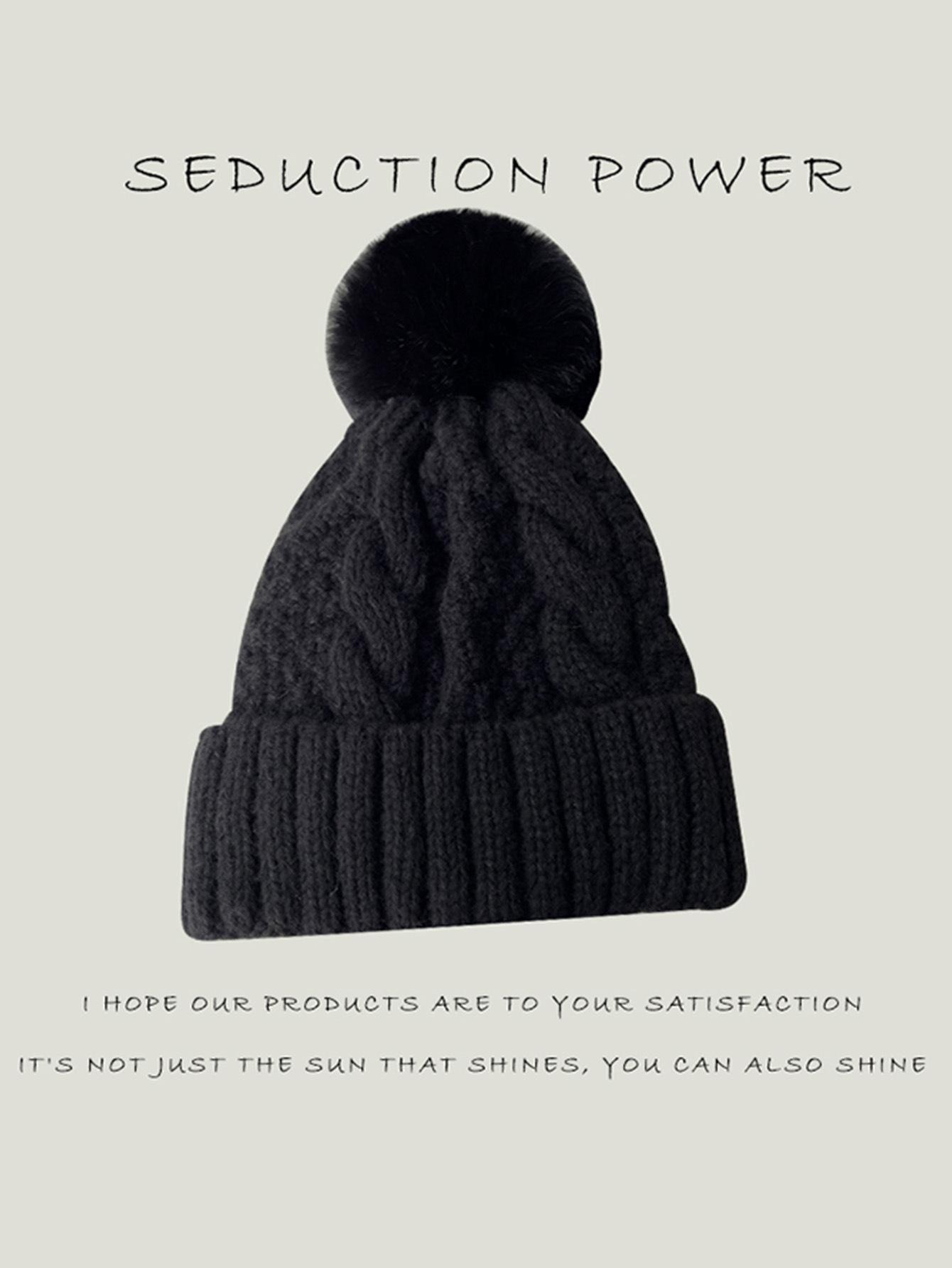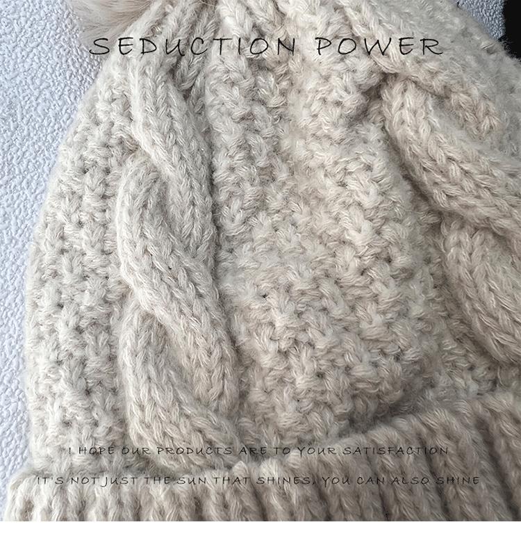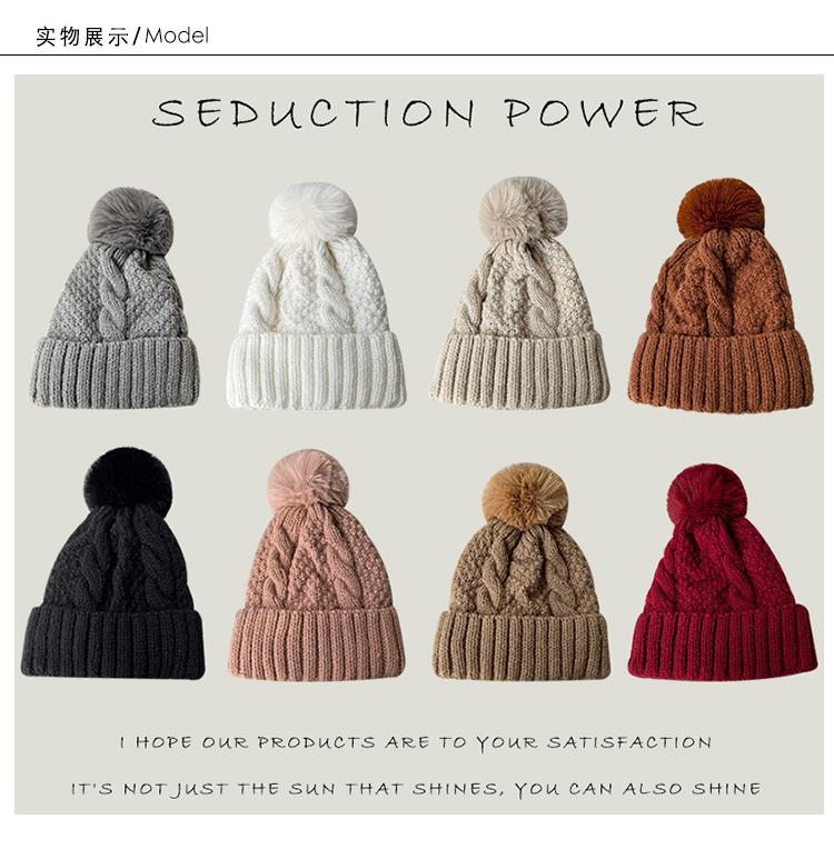 Novo outono e inverno forrado de lã quente cor sólida agulha grossa torção bola de lã chapéu de malha Europeu e Americano moda all-match chapéu de lã à prova de vento