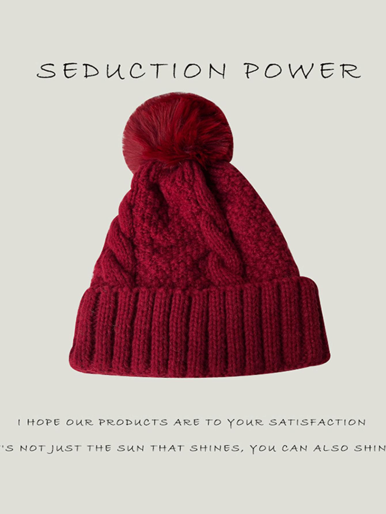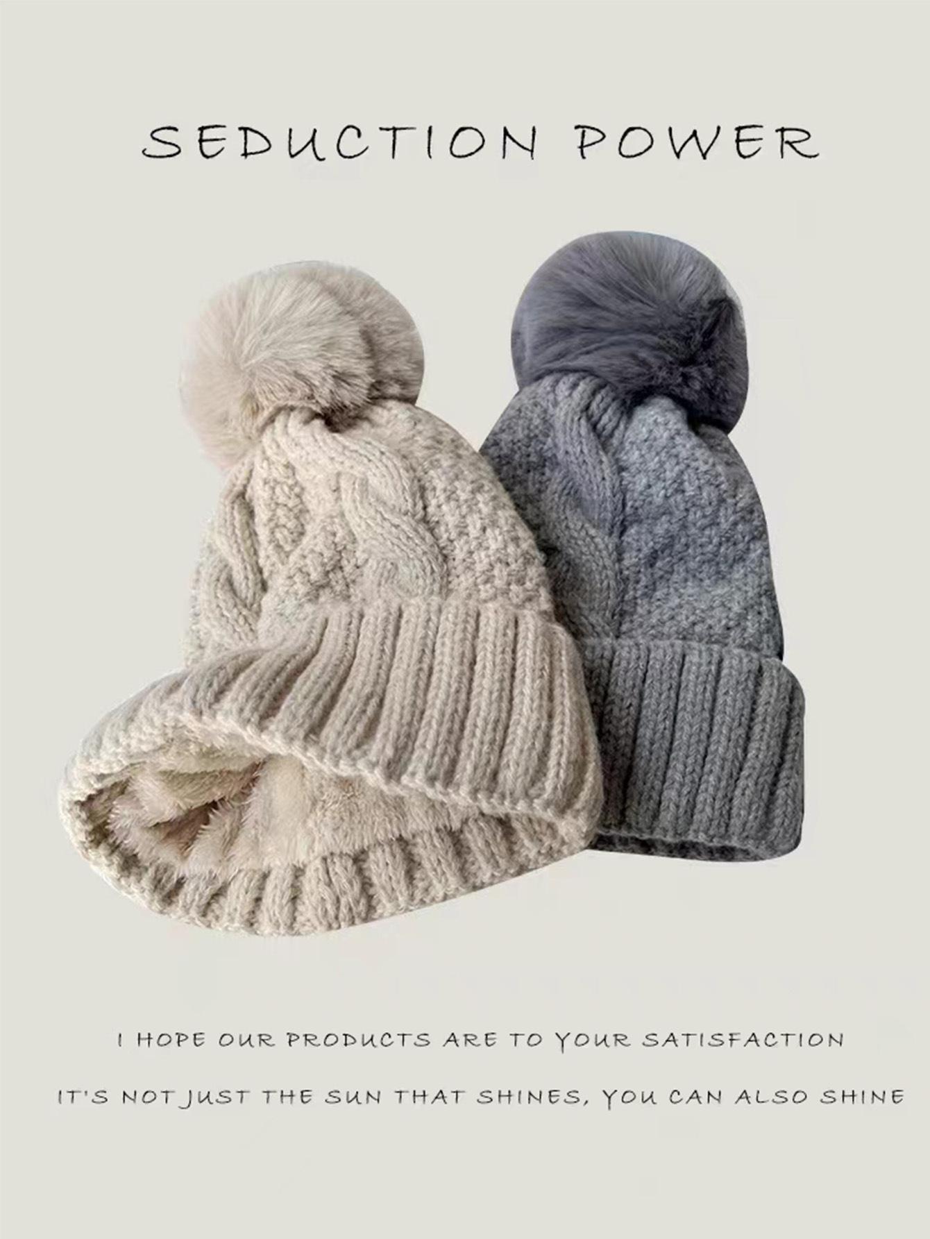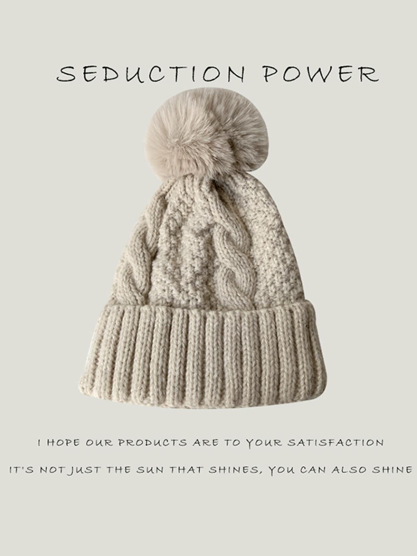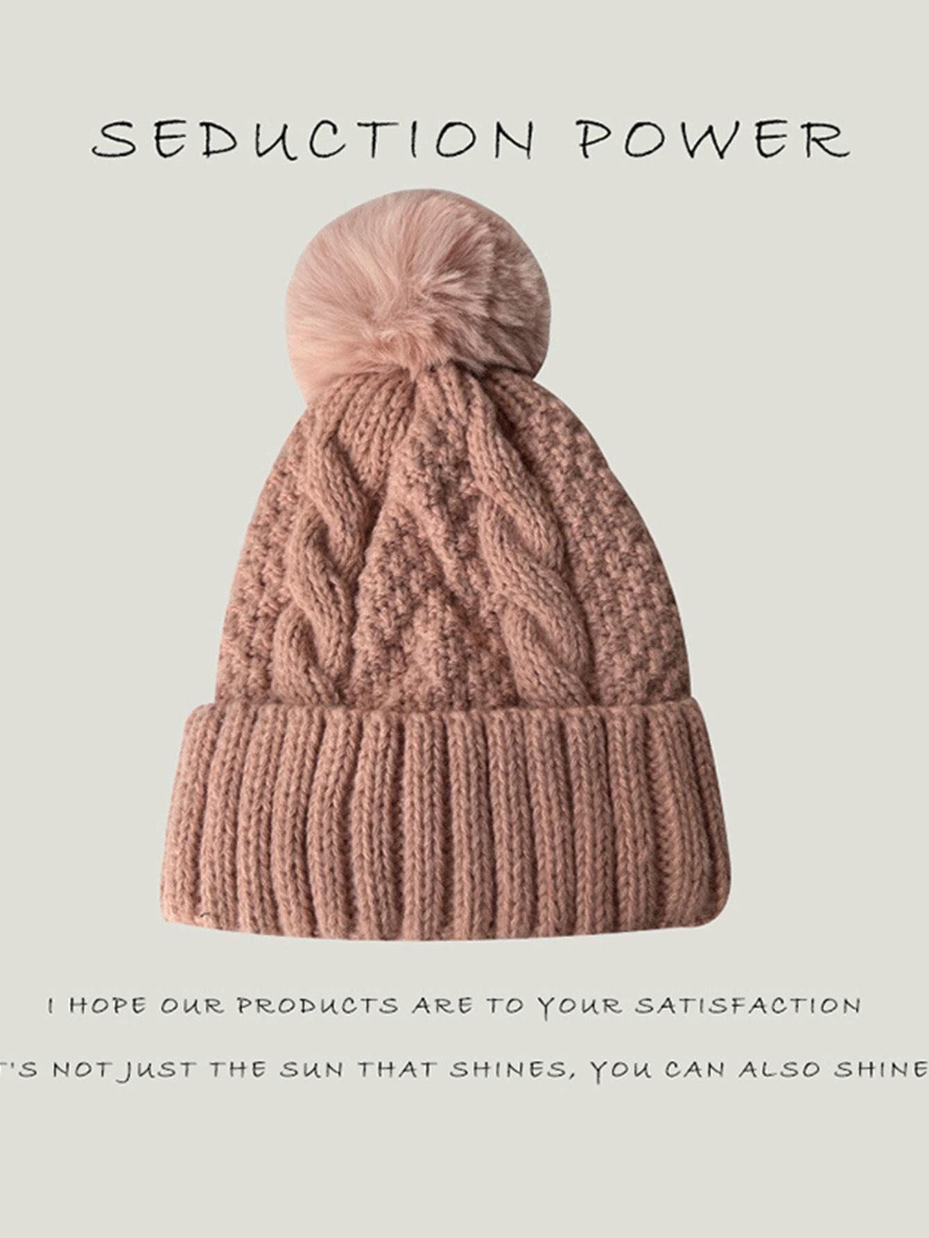 Novo outono e inverno forrado de lã quente cor sólida agulha grossa torção bola de lã chapéu de malha Europeu e Americano moda all-match chapéu de lã à prova de vento