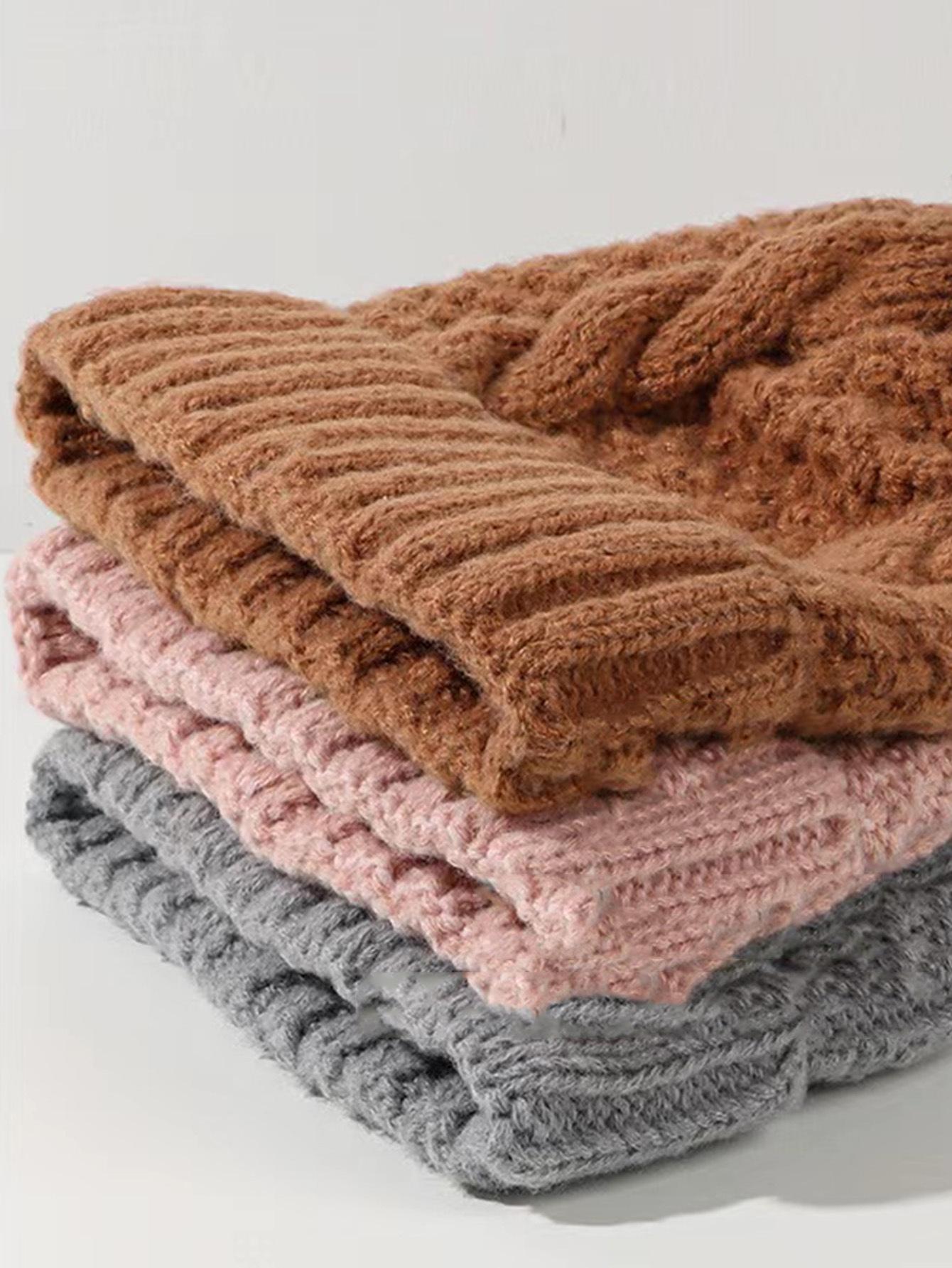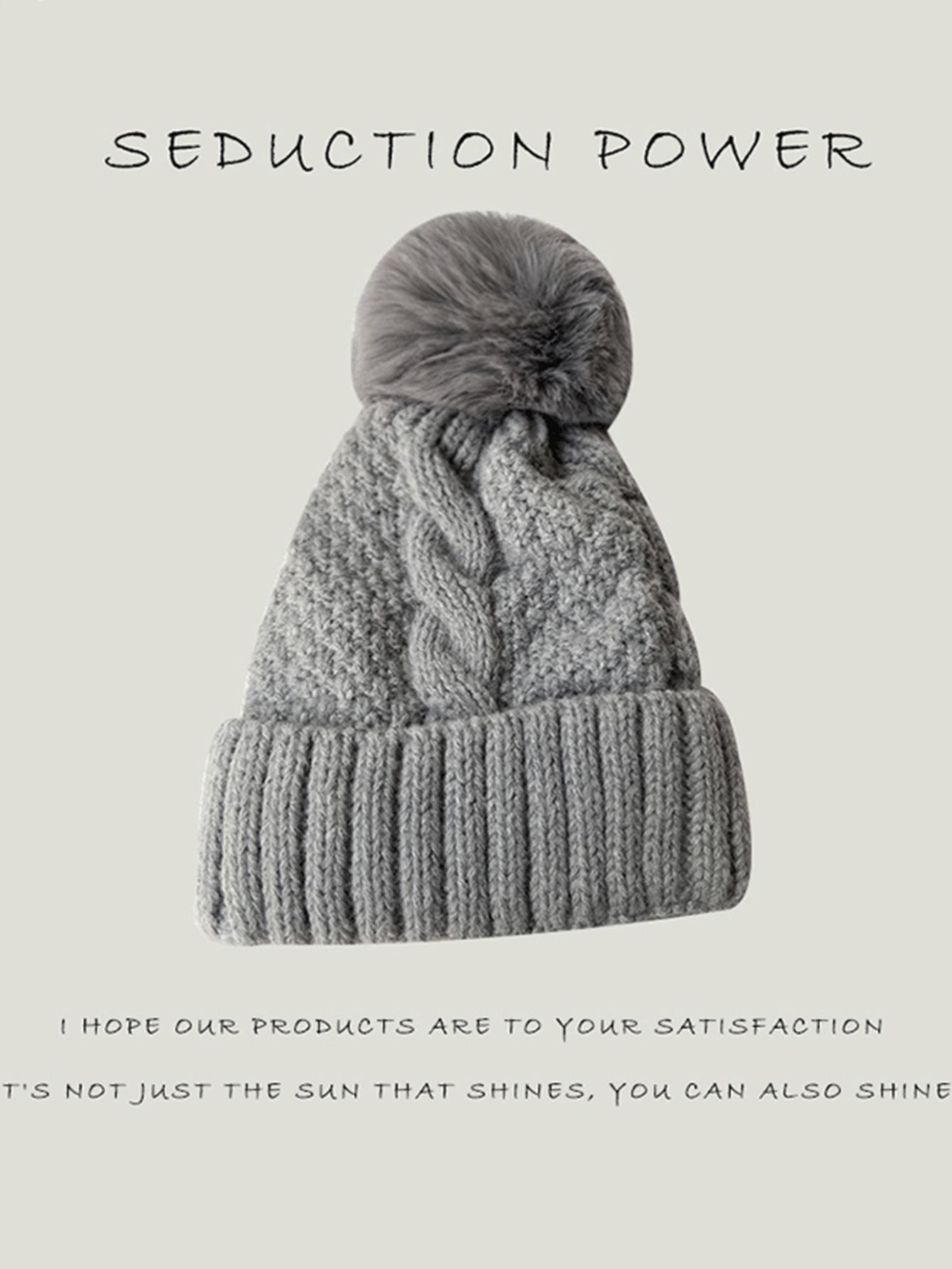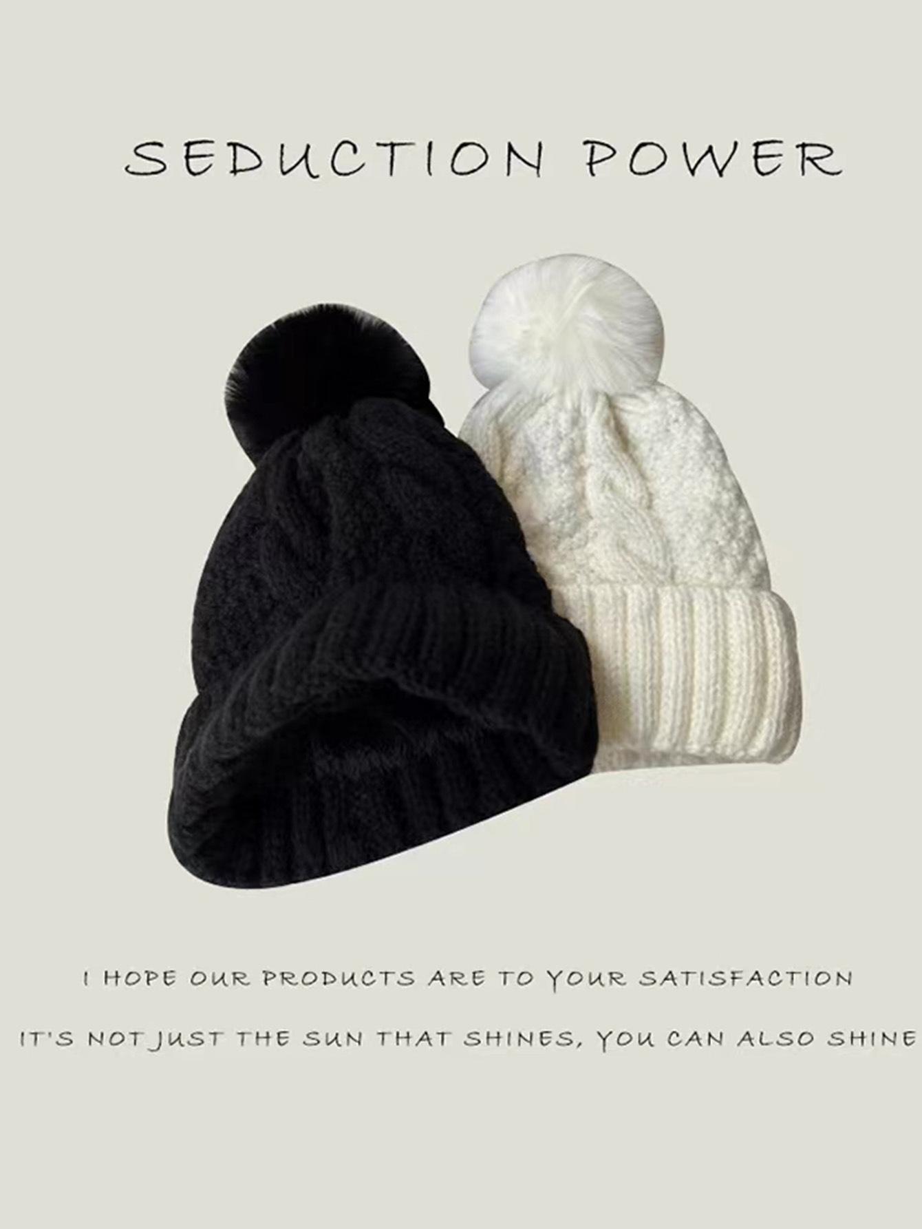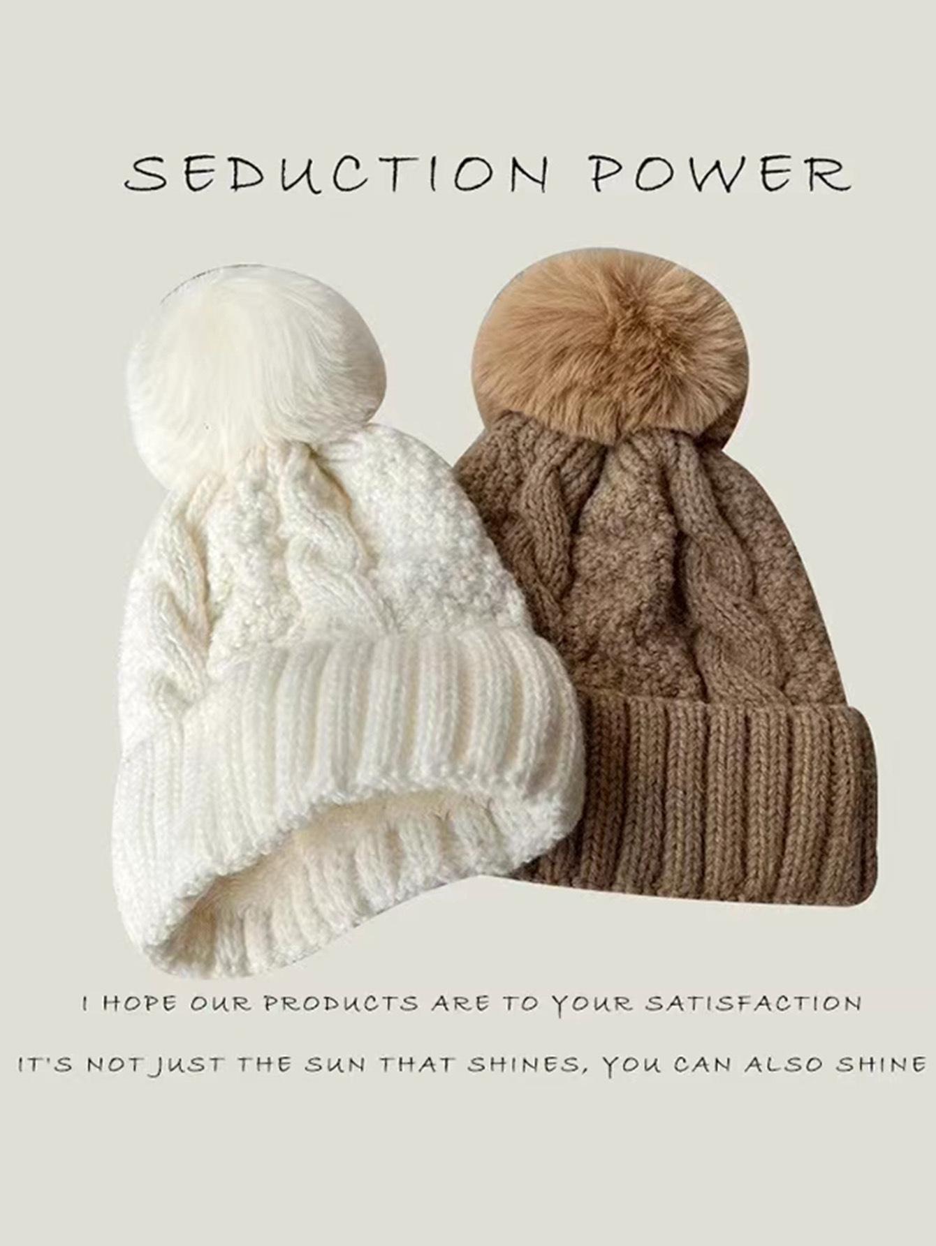 Novo outono e inverno forrado de lã quente cor sólida agulha grossa torção bola de lã chapéu de malha Europeu e Americano moda all-match chapéu de lã à prova de vento