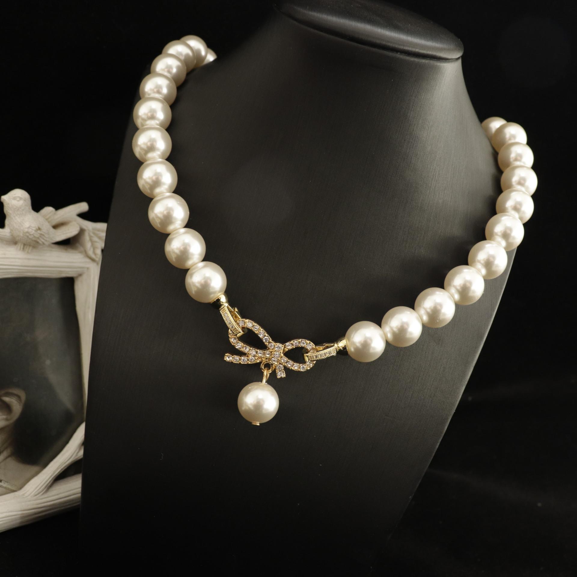 2024 Novo Colar Pingente de Laço Pérola de Vidro Luxo Leve High-End Vintage Versátil Corrente para Clavícula