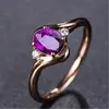 Europa e Estados Unidos temperamento de luxo chapeamento 18k Rose Gold Ametista Gem anel de diamante roxo mulheres abertura Anel de Jóias Atacado