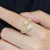 Anel de retenção de cor banhado a ouro micro incrustado zircão aberto anel de dedo indicador design de pérola de água doce natural anel de sentido anel de cauda para mulheres
