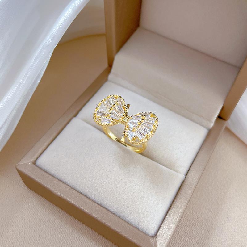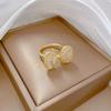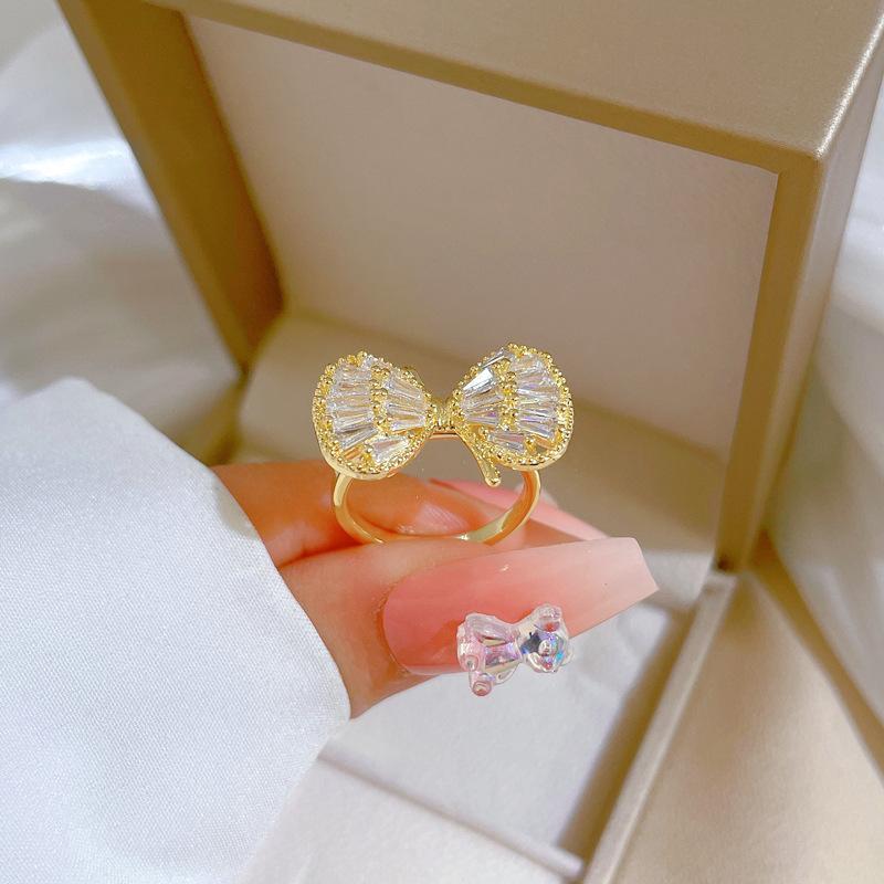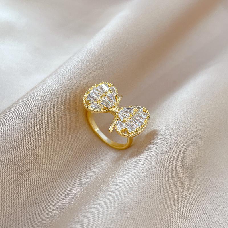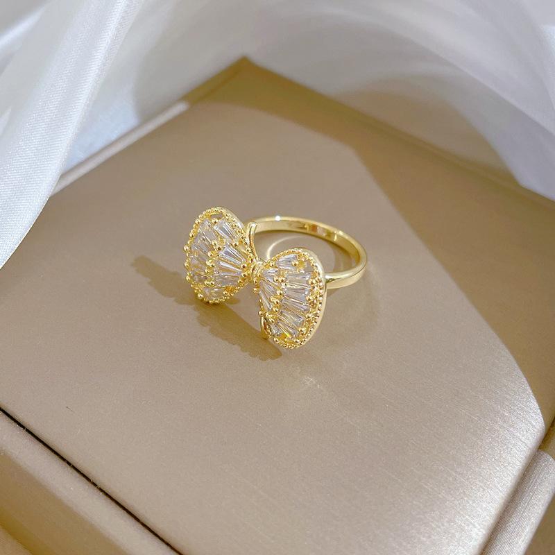 [Ouro Real] Anel Zircônia Laço Abertura Ajustável Joia Simples Anel Japonês Anel de Casal