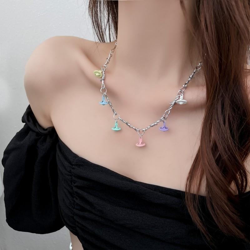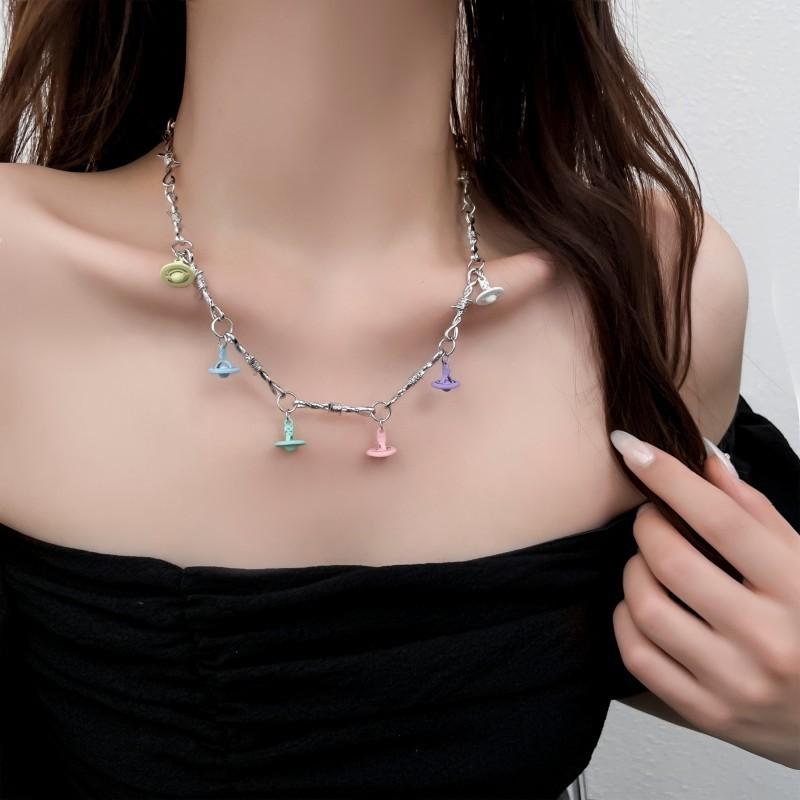Doce cool moda colorido planeta pingente clavícula cadeia personalidade única nicho design alto sentido Nova Moda colar
