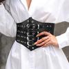 Estilo Europeu e Americano Vintage Botão de Metal Cinto Largo Elástico Rebite Moda Combinação Perfeita Casaco Selo de Cintura Elástico