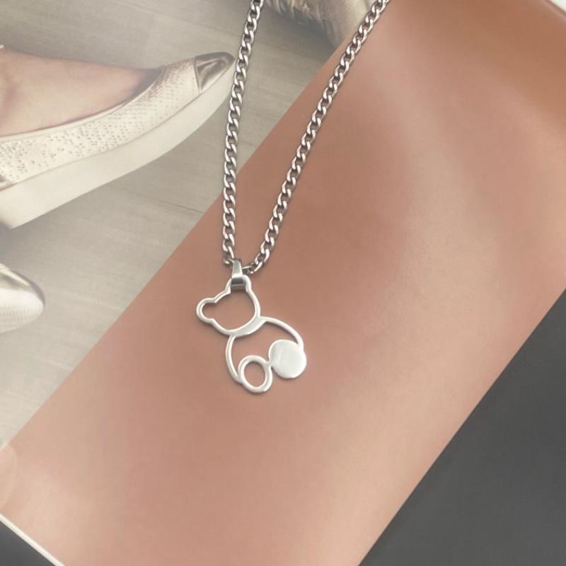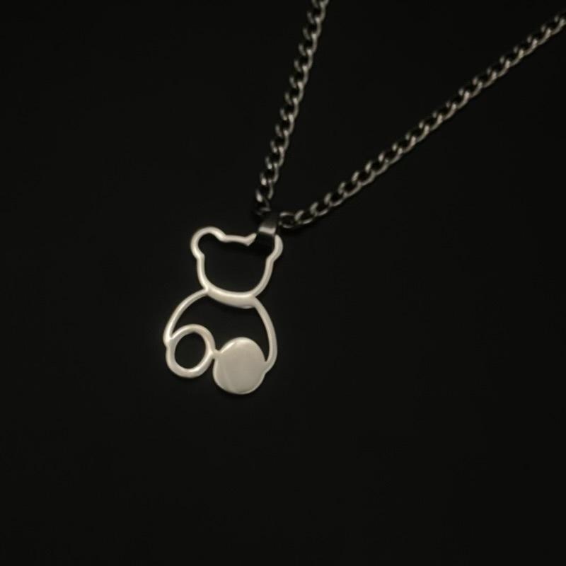 Cartoon Bear Colar Pingente Acessórios Titânio Aço Não Desbota Internet Celebridade All-match Hip-hop Curto Bonito Casal Moderno para Homens e Mulheres