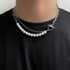 Design original de dupla camada de costura de pérolas colar frisado feminino otbuckle clavícula cadeia masculino nicho neutro colar estilo