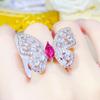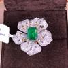 Livro Vermelho recomenda anel de dedo de flor esmeralda de imitação de diamante completo micro-cravado, retrô, cor de gema alta, anel aberto