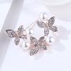 Estilo coreano moda high-end diamante três borboleta tridimensional grande pérola broche pino simples camisola acessórios broche