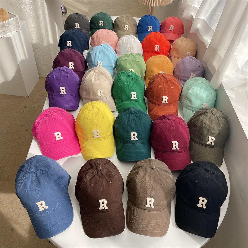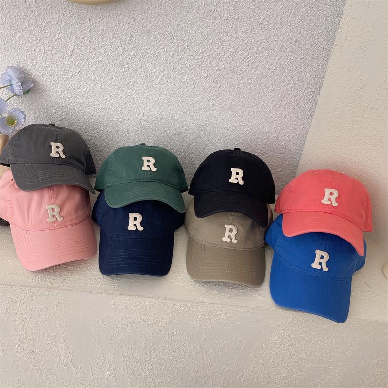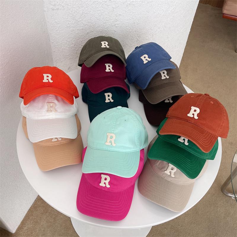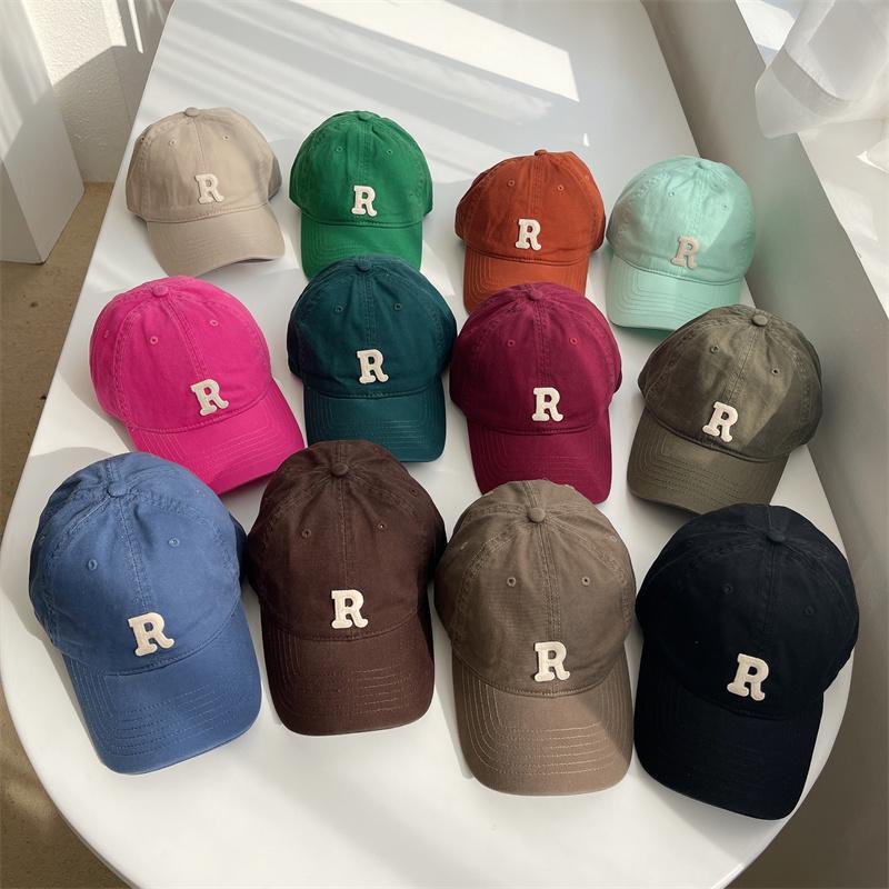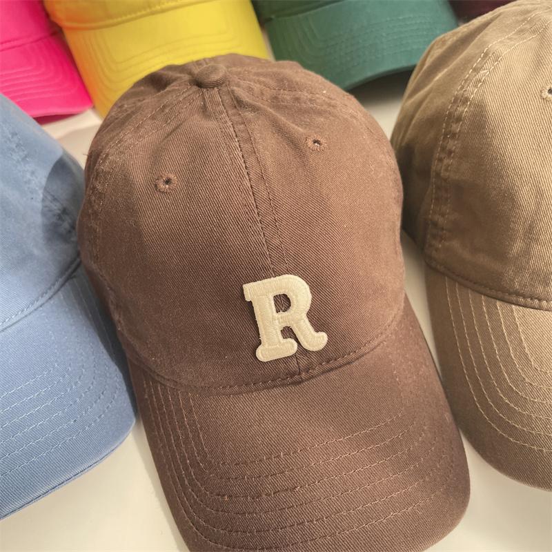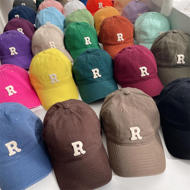 Nova letra R cor boné de beisebol feminino verão estilo coreano ins soft top sun-proof pontiagudo cap estudante casal chapéu de sol