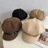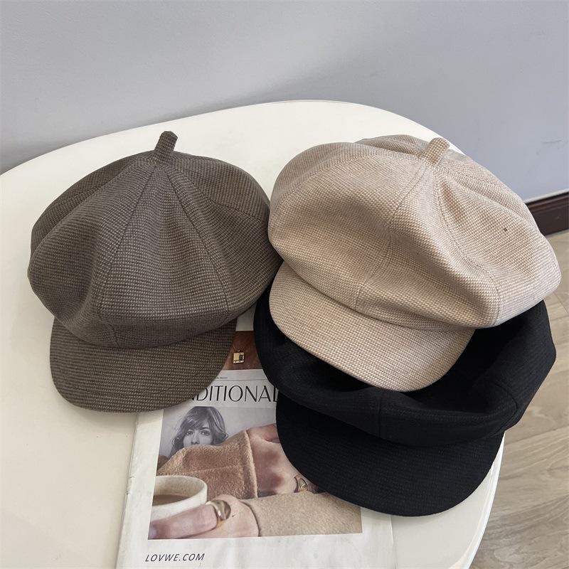 Estilo japonês xadrez fino lã fivela macia chapéu jornaleiro feminino outono e inverno artístico retro britânico quente octogonal boné pontiagudo