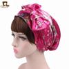 Novo chapéu de cetim feminino com laço de seda para quimioterapia, chapéu com trança de cauda longa TJM-226 |