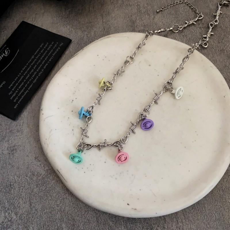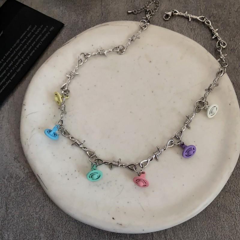 Doce cool moda neutro colorido planeta clavícula cadeia luz temperamento de luxo nicho design colar acessórios personalizados