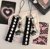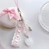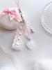 Fita rosa garra de gato linda menina coração frisado cadeia de telefone caso decorativo pingente de telefone móvel artesanal pendurado cadeia