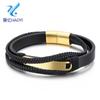 Pulseira de couro trançado multicamadas simples de comércio exterior, pulseira de couro de marca curva de aço de titânio, moda masculina