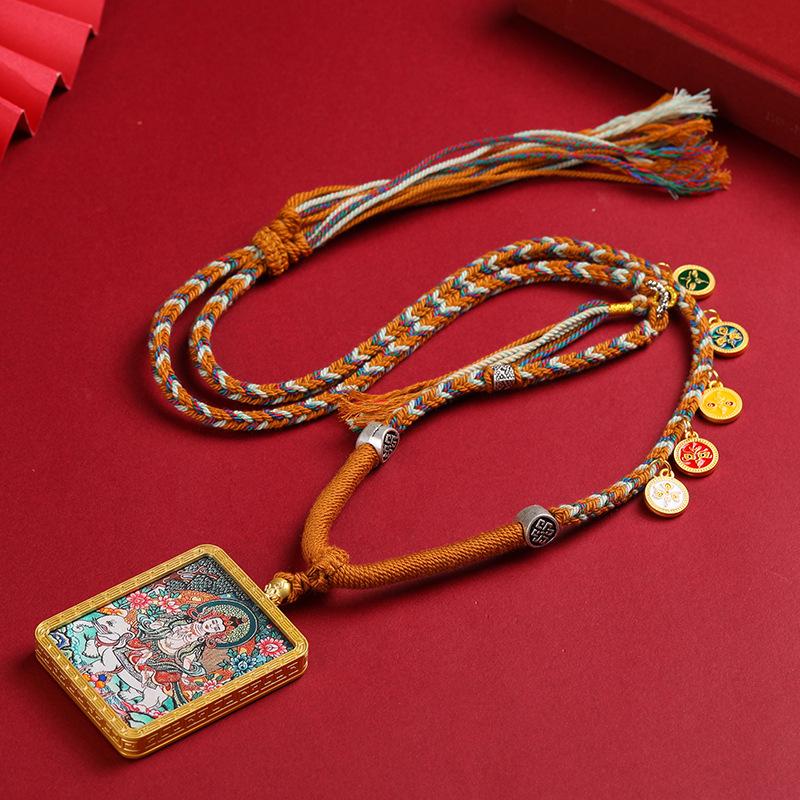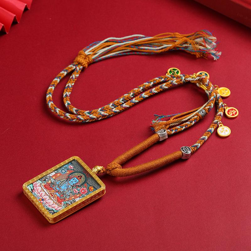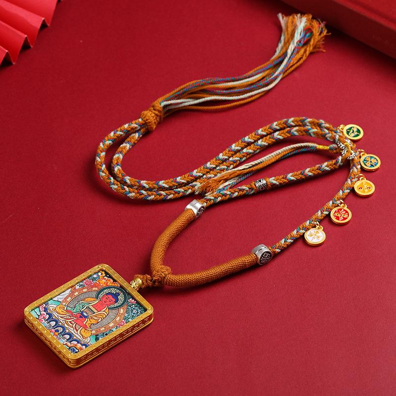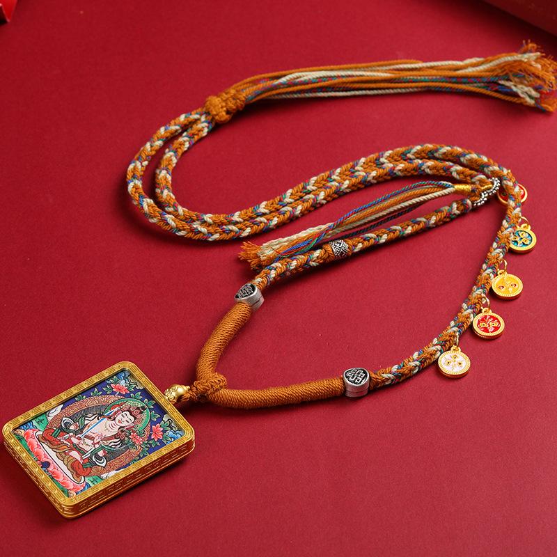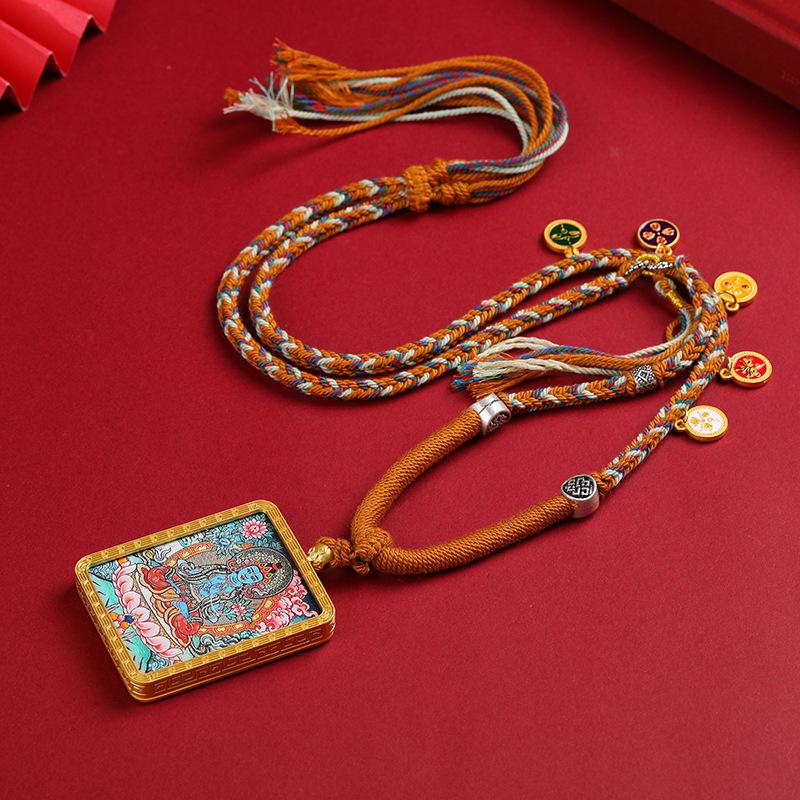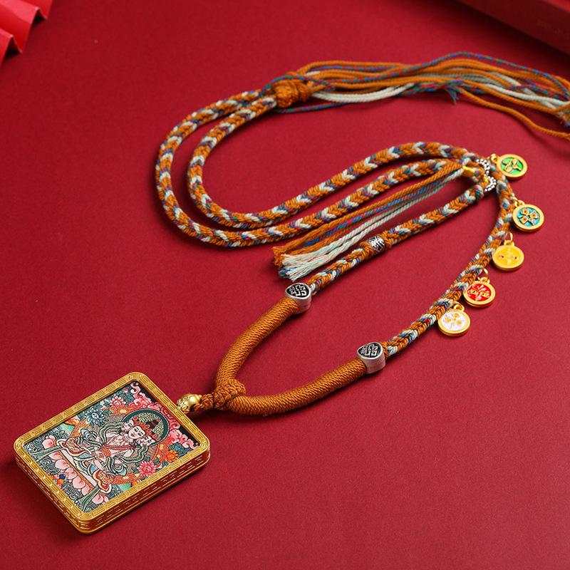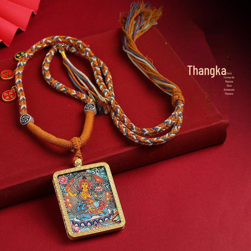 Colar Pingente Xizang Cordão Pingente Thangka Pingente Wuye Pingente Templo Wenchuang Oito Deidades Padroeiras Cordão de Algodão Tecido à Mão