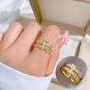 [Ouro Real] t Corrente de Zircônio Anel de Diamante Completo Abertura Ajustável Joia de Mão Casual Anel Estilo Japonês Anel de Casal