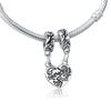 Pingente Duplo de Prata Antiga com Desenho de Coração para Mãe e Filha, Acessório de Miçangas DIY, Pingente para Presente de Dia das Mães