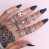 Compre Europa e os Estados Unidos novo retro oco esculpido elefante crescente embutido gema 13 peça combinação anel jóias atacado no atacado no Joom.pro