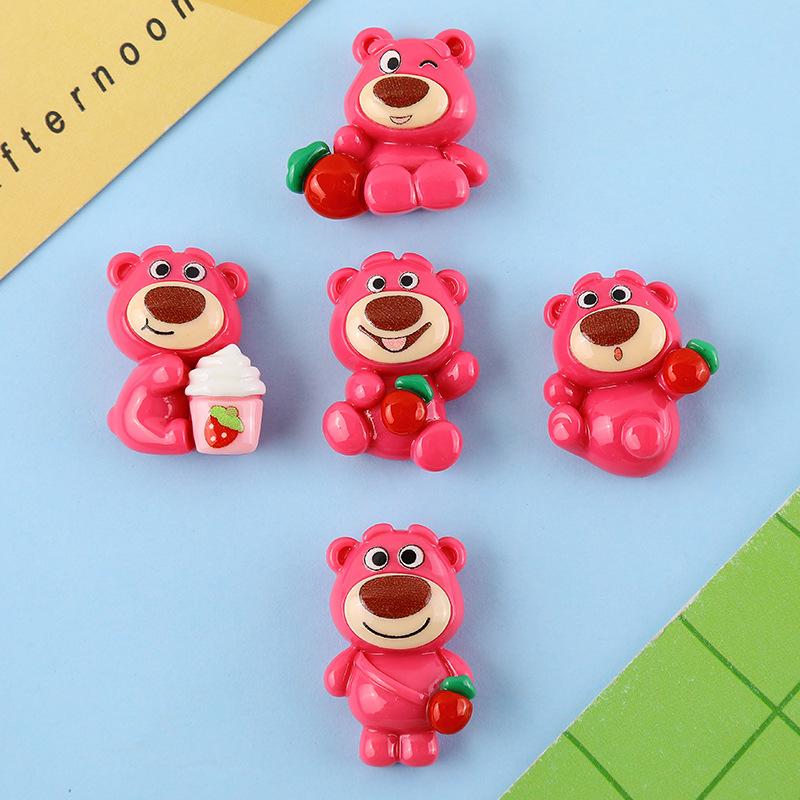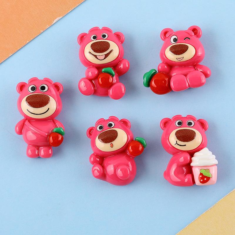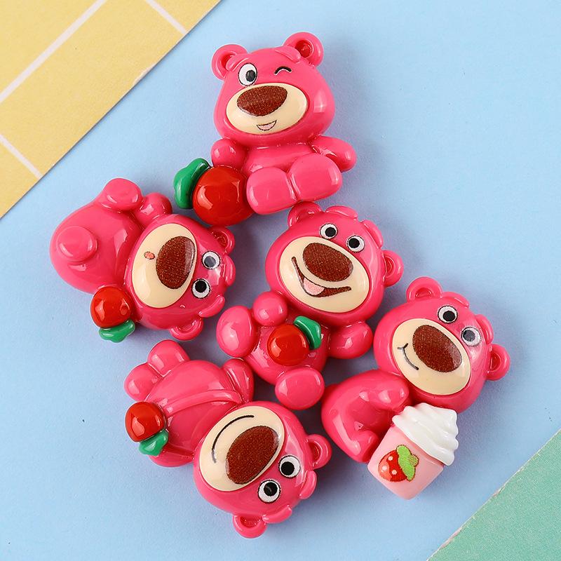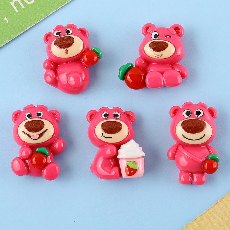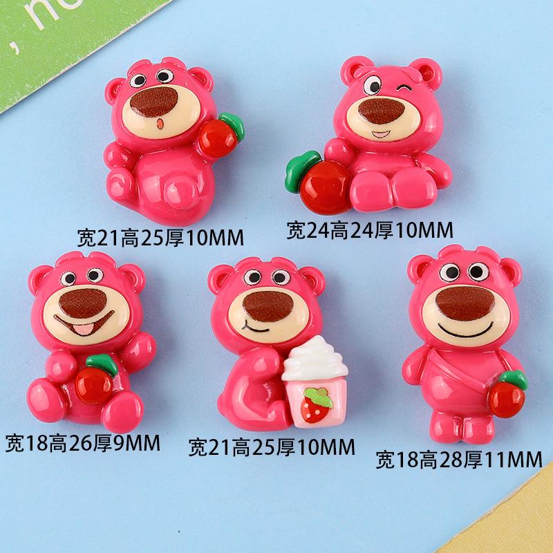 Acessórios de resina dos desenhos animados urso morango creme cola diy jóias telefone móvel shell caixa de armazenamento copo de água patch hairpin material