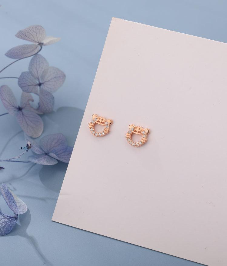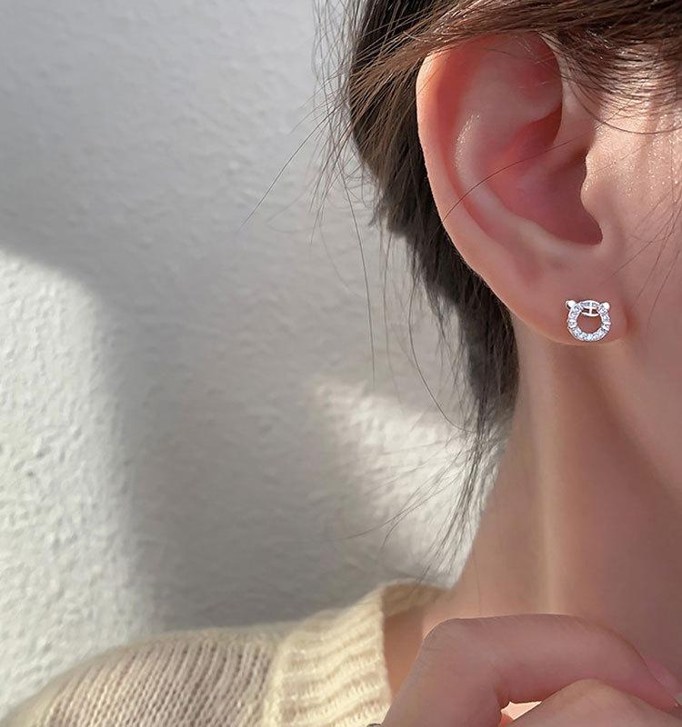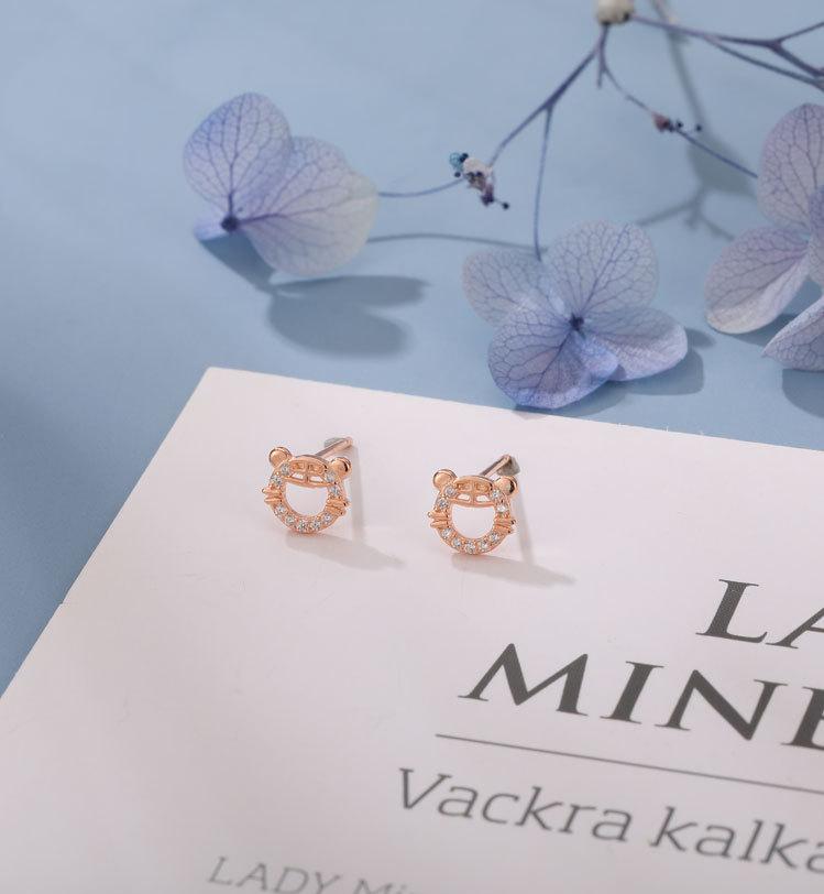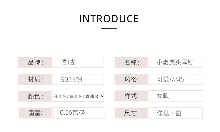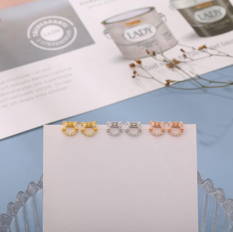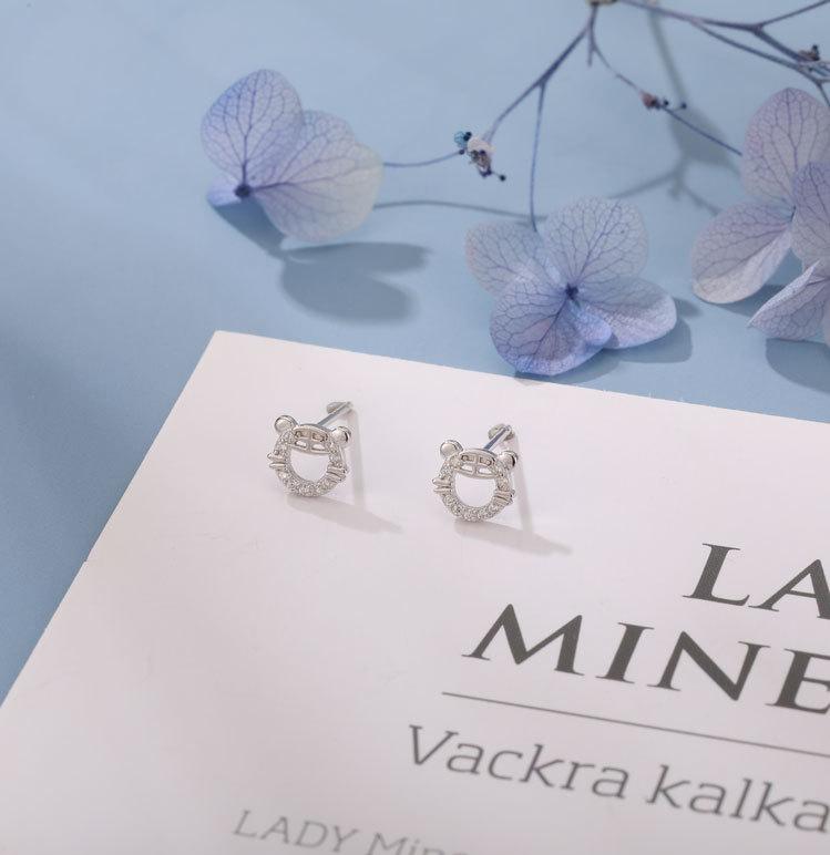 Hee goo E1111 S925 prata novos pequenos brincos de cabeça de tigre brincos de diamante pequenos brincos fofos