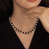 Longlong joias de ouro brilhantes redondas grandes 8mm pérola ágata preta colar vintage corrente clavícula francesa 40 5cm