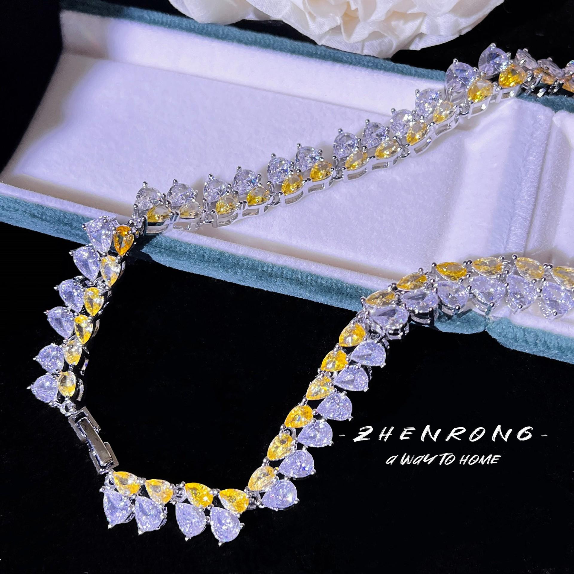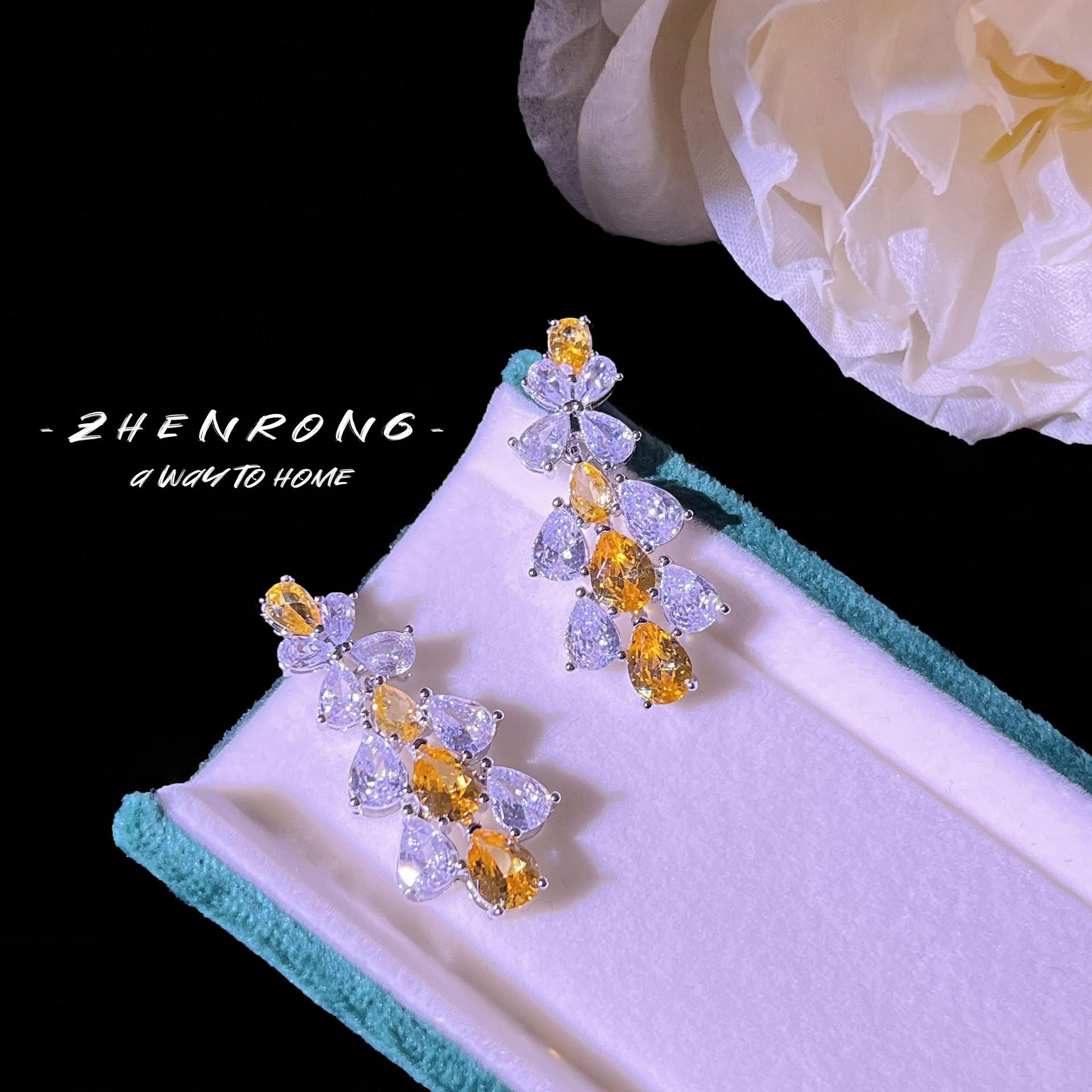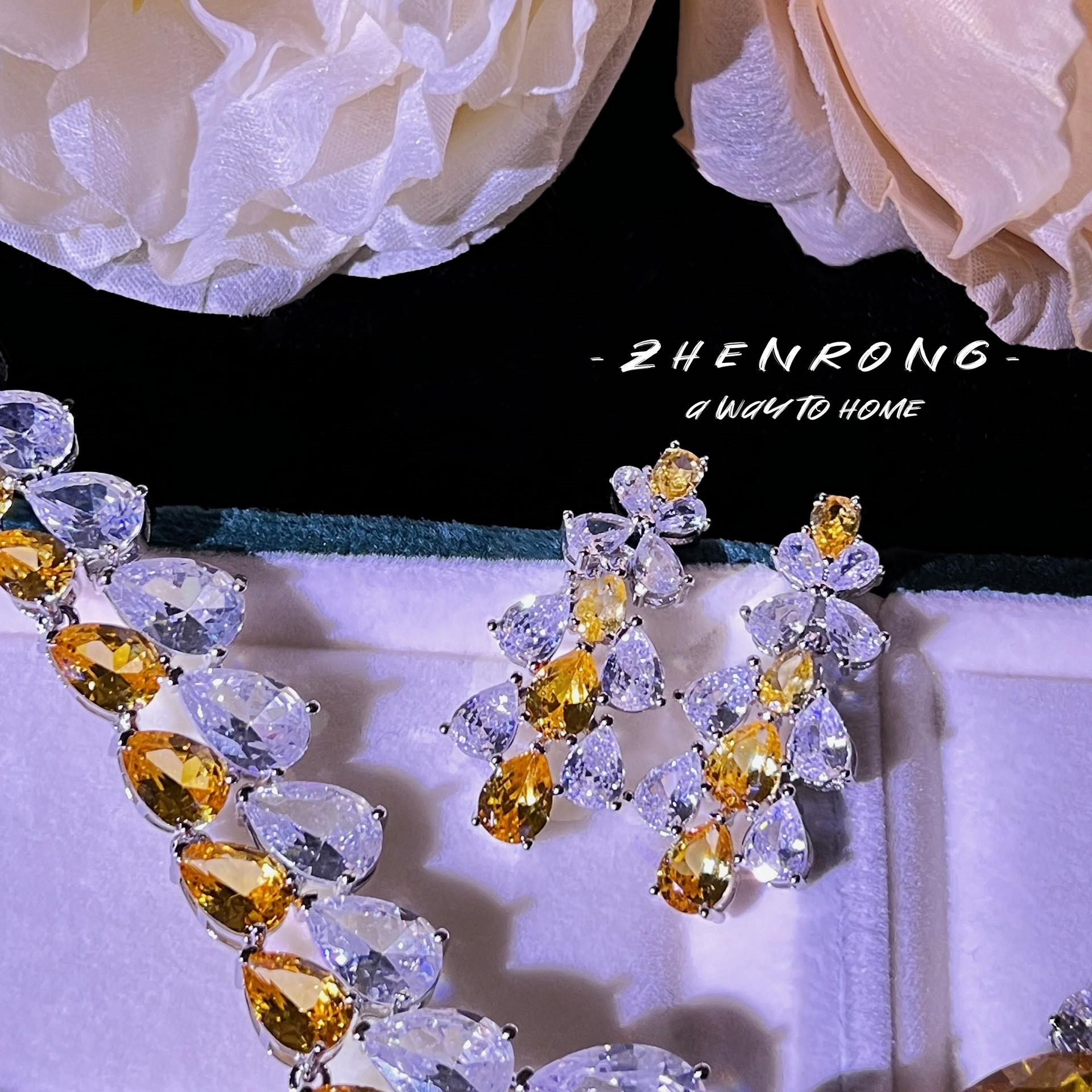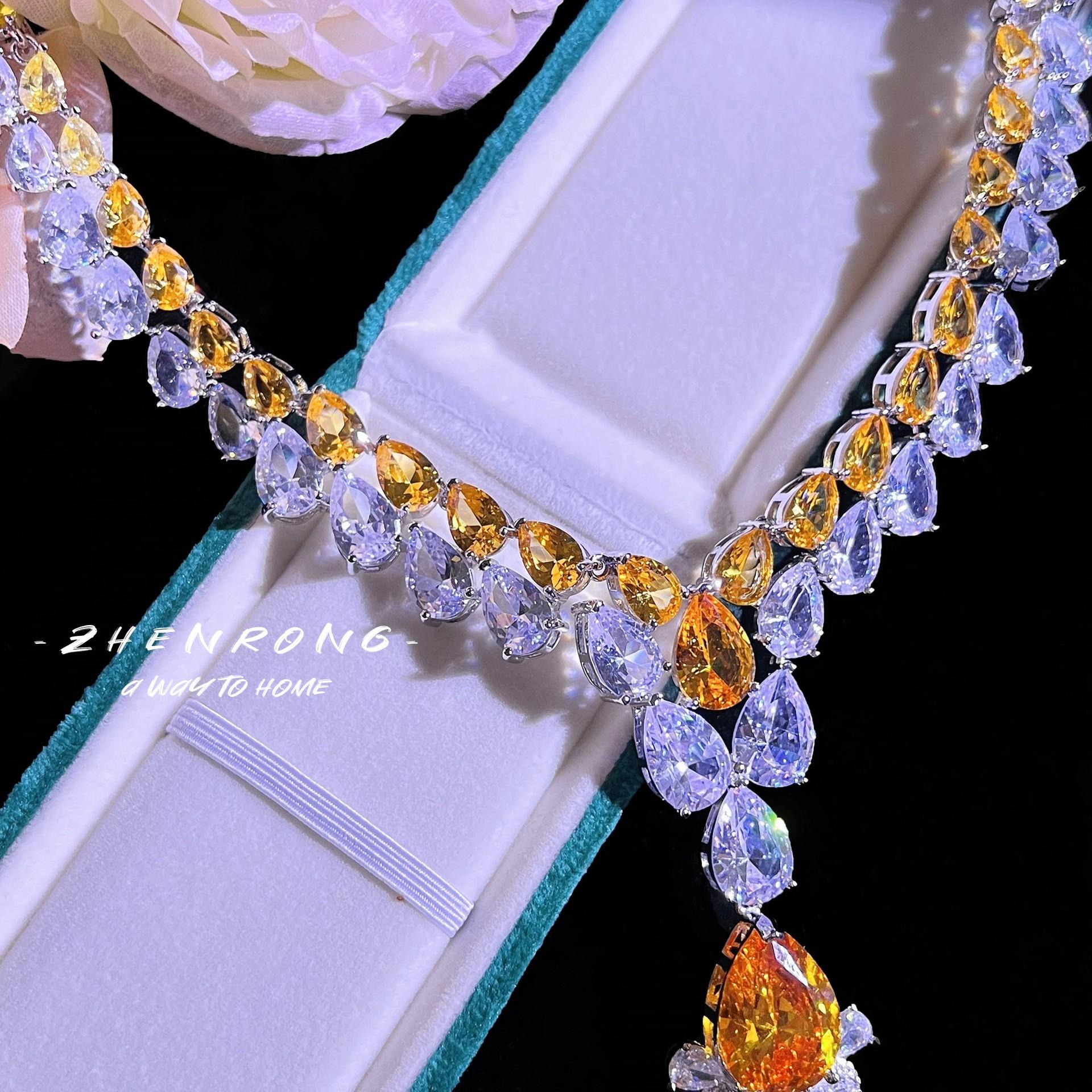 Colar de diamantes amarelos em forma de V da GRA Big Brand, mesmo estilo, para recepção de casamento, deusa da luz, brincos de gota d'água, terno de noiva feminino