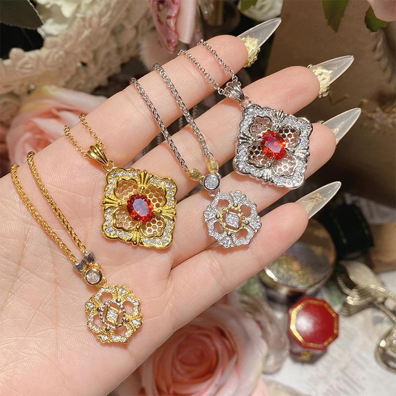 Camélia Hot New Vintage Light Luxo Diamante Flor Colar Feminino Cor Separada Ouro Galvanizado Elegante Deusa Colar