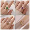 Anel para Mulheres, Estilo Japonês e Coreano, em Forma de Coração, Zircônia Roxa Giratória, Design Aberto Ajustável, Design de Nicho, Modelo Popular da Moda