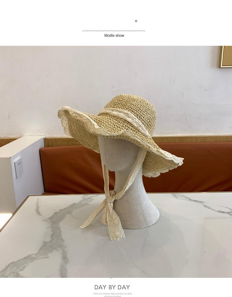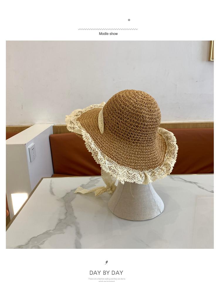 Chapéu de Palha para Mulheres Novo 2023 Verão Viagem à Beira-Mar Renda Alça Lateral Alça de Proteção Solar Chapéu de Praia Férias Respirável com Cadarço