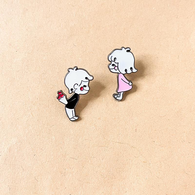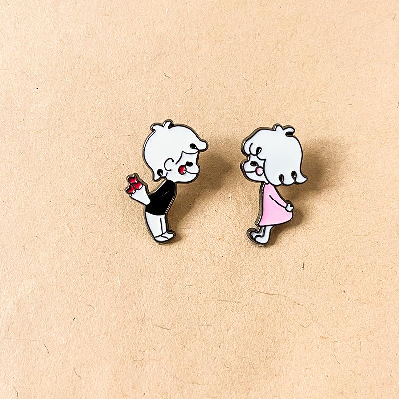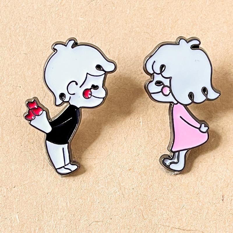 Broche de metal dos desenhos animados bonito casal japonês confissão crachá roupas fixas PIN all-match estudante jóias pin