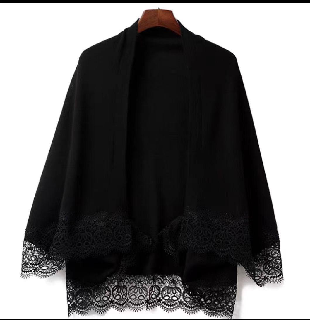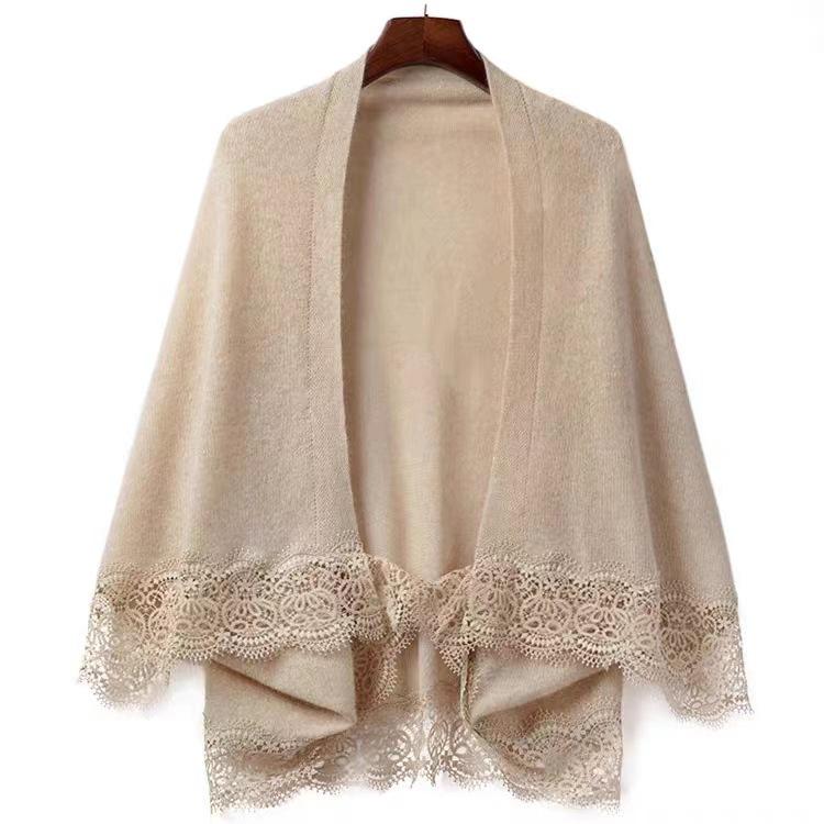 Outono e Inverno Nova Moda Lace Xale Dual-purpose Camisola de Lã Cachecol Feminino Poncho de Malha Cardigan Top Coat