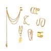 Brincos de borla com folhas de metal de comércio exterior europeu e americano transfronteiriço, clipe de orelha, sem furo de orelha, conjunto de brincos de clipe de orelha de personalidade, atacado
