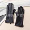 Luvas de couro novas de inverno para mulheres, tela sensível ao toque, veludo acolchoado, quente, Pew, à prova de vento, fábrica, atacado, três nervuras
