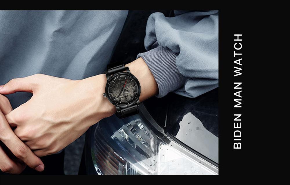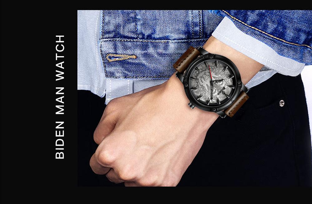 BIDEN Biden marca relógio masculino couro genuíno cinto relógio à prova d'água atacado relógio de quartzo relógio 0185