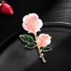 Broche Flor Rosa Resina Agulha Prata Brinco Esmalte Gotejamento de Óleo Folha Verde Lâmina Feminino Pó Cristal de Gelo Senso de Alta Qualidade Corsage