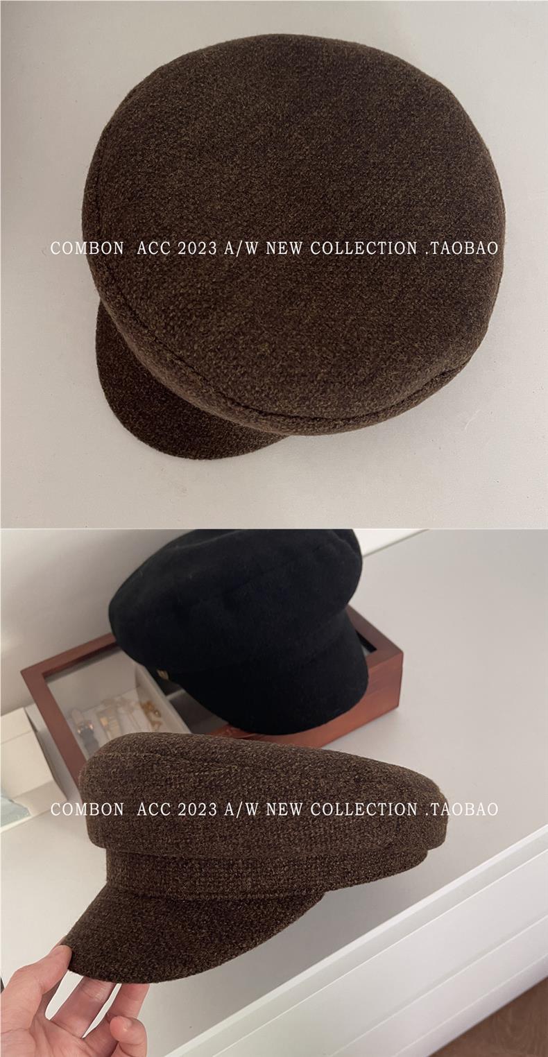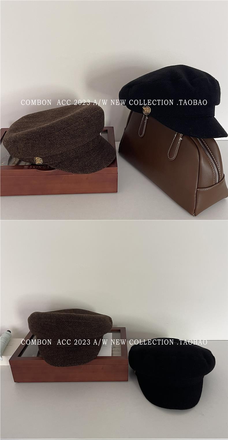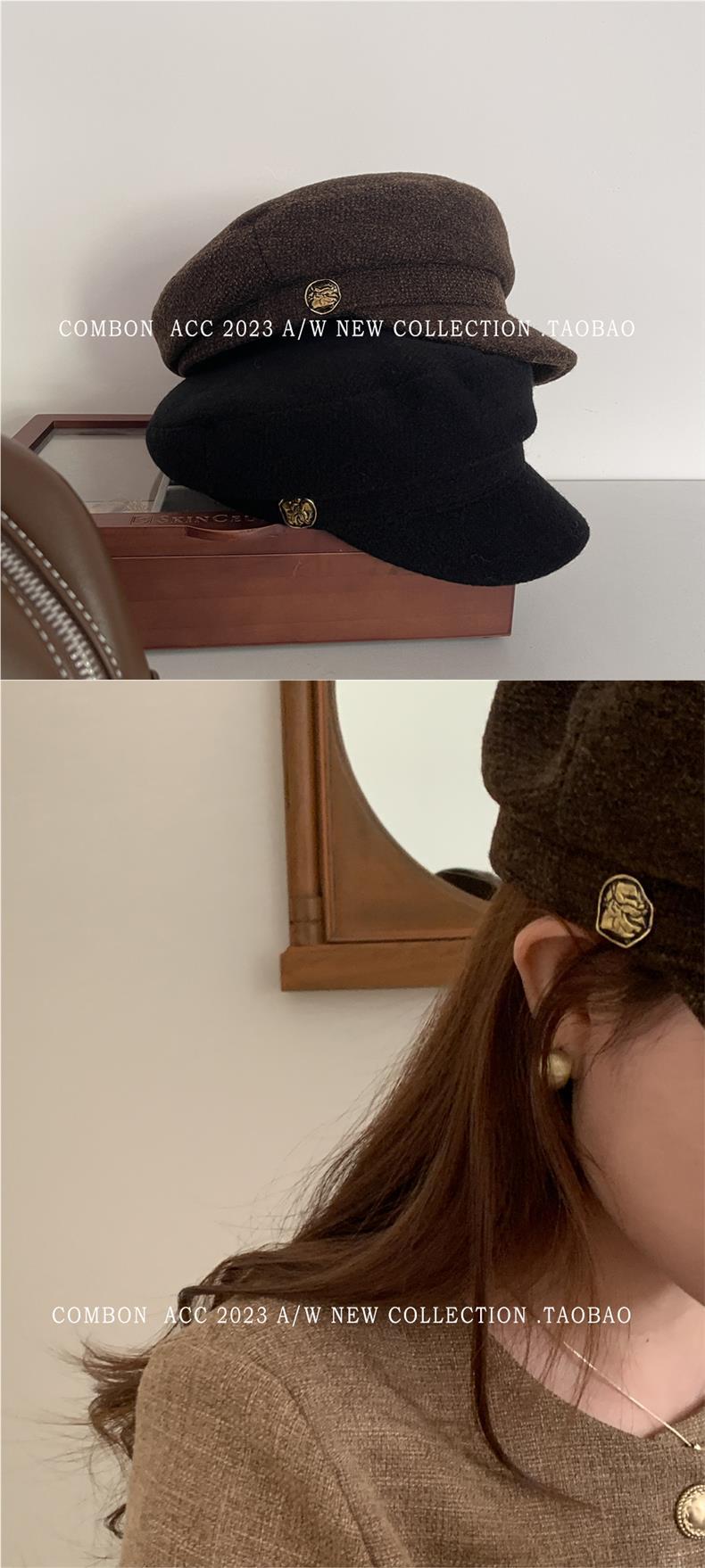 Chapéu de jornaleiro de lã estilo coreano nova boina feminina outono e inverno chapéu octogonal retrô Chapéu de pintor de topo plano britânico